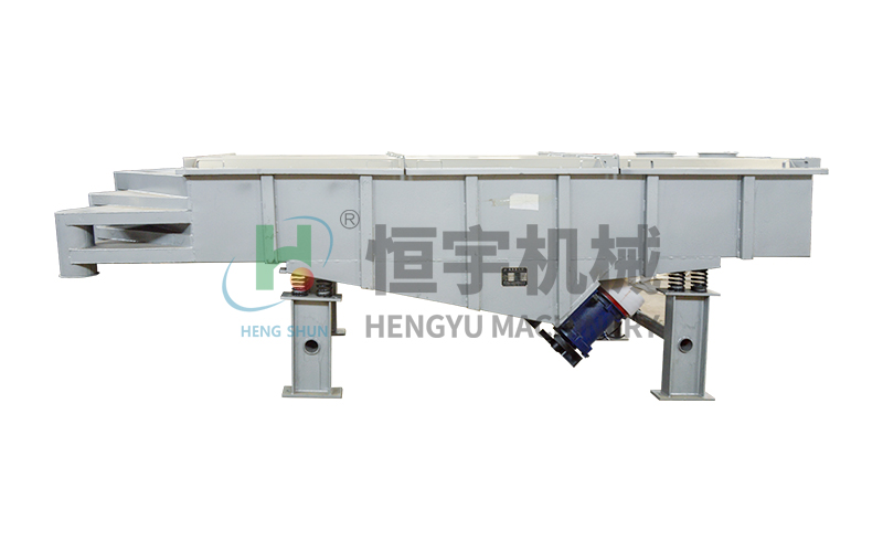大型直線振動篩由篩箱由槽體、上蓋、進料口、篩框、篩板(網(wǎng))、襯網(wǎng)、出料口等組成。減振系統(tǒng)由阻尼彈簧和彈簧座等組成。用優(yōu)質(zhì)振動電機做為振動源,本篩機配有兩臺振動電機,工作時兩臺電機偏心塊做相反方向轉(zhuǎn)動,水平方向兩臺電機合力為零,垂直于電機軸方向形成一合力,電機軸與篩板成一定夾角,合力使物料在篩網(wǎng)上被拋起,同時向前做運動。物料從經(jīng)給料機均勻地進入篩機的進料口,通過多層不同孔徑篩網(wǎng)產(chǎn)生數(shù)種產(chǎn)品和不合格的篩上物、篩下物分別從各自的出口排出。